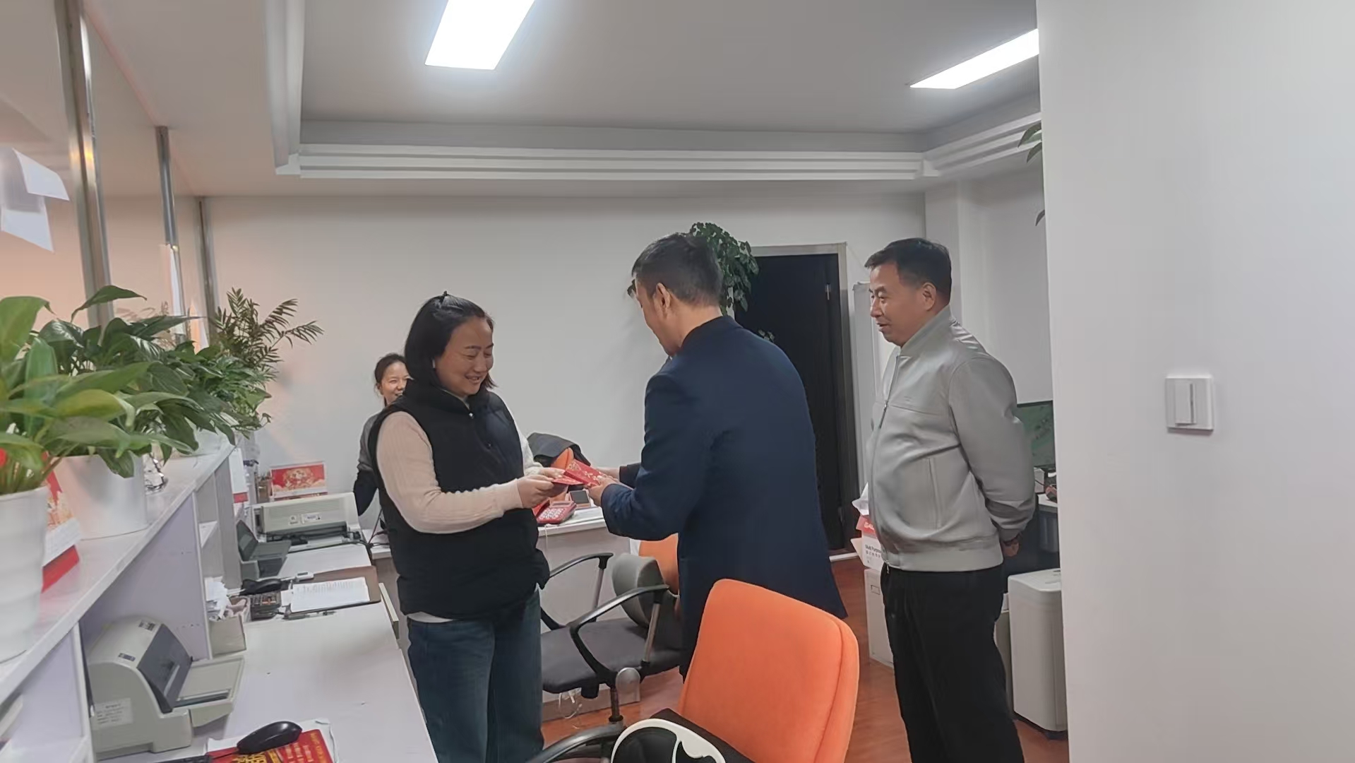 2月24日8:30时公司正式开市营业,公司董事长及总经理深入各部门慰问并发放开年红包,祝愿公司开业大吉。